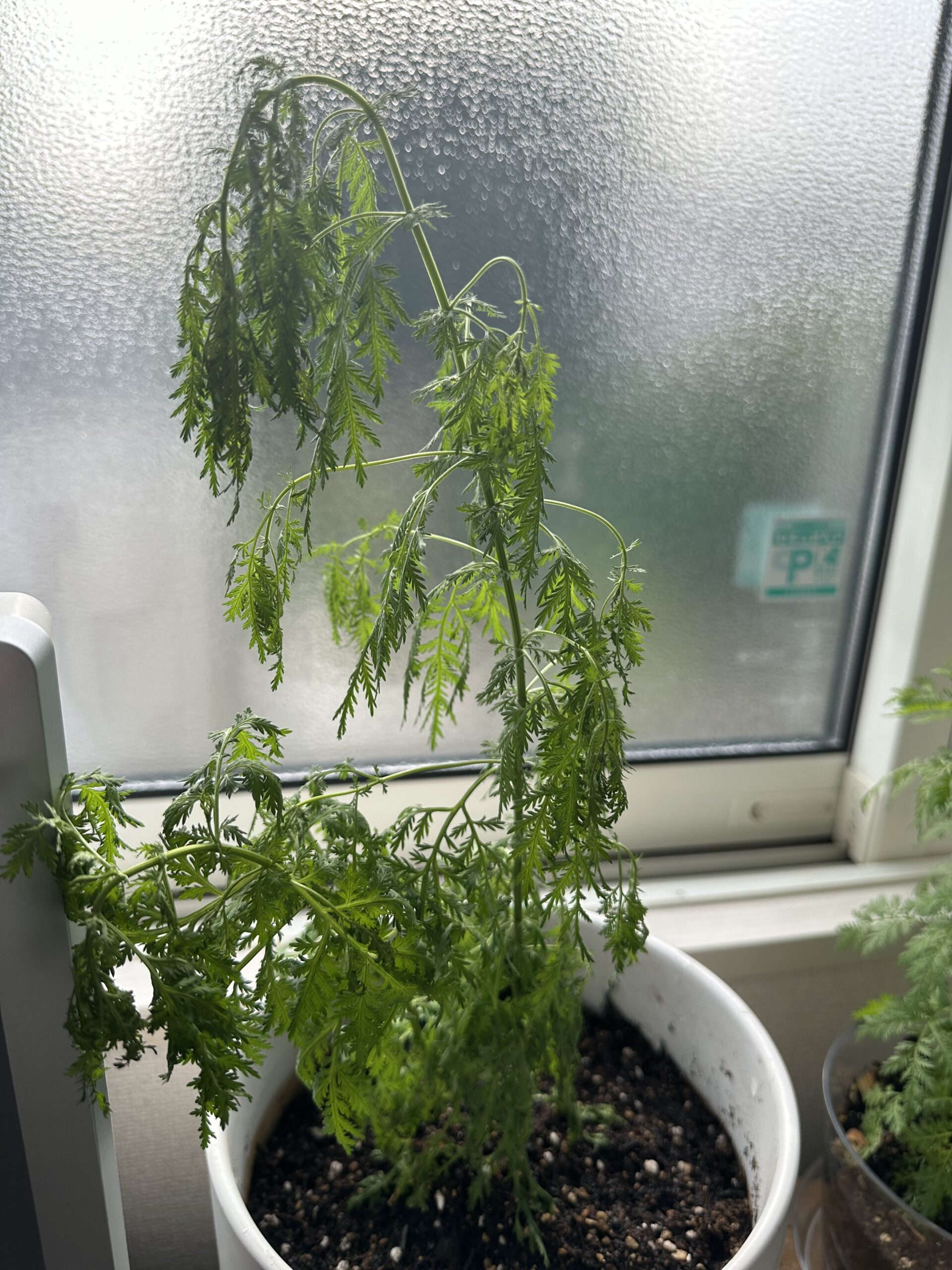 茎が赤み始め、次に茎の下の方から葉が茶色くなり、花が茶色くなる。3月に種を蒔き、ようやく満開に。